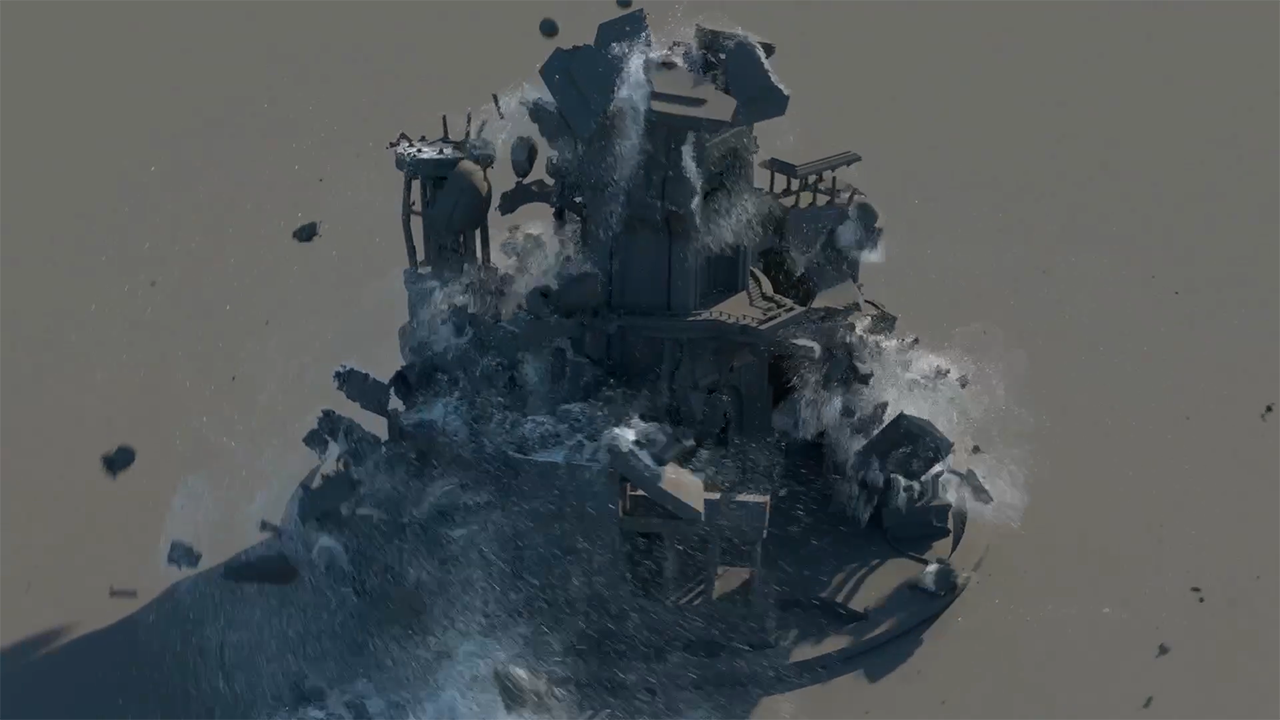 新しい VFX ツールには、リアルなシミュレーションを実現するパワフルな機能強化が含まれており、改良された Pyro FX レシピ、MPM ベースの破壊ツール、流体向けの ML (機械学習) ベースのサーフェシングツールなどが実装されています。